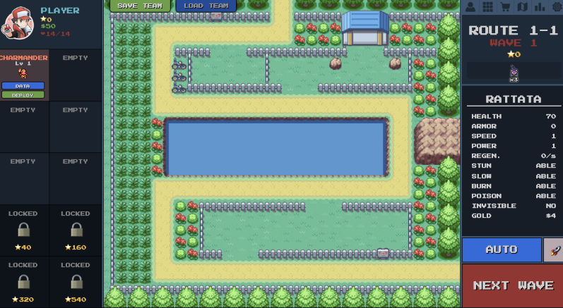 In this poke path tower defense game, you build a team of Pokemon and place them along a path. Bad Pokemon march down the road trying to escape. Your job? Don’t let them get away!